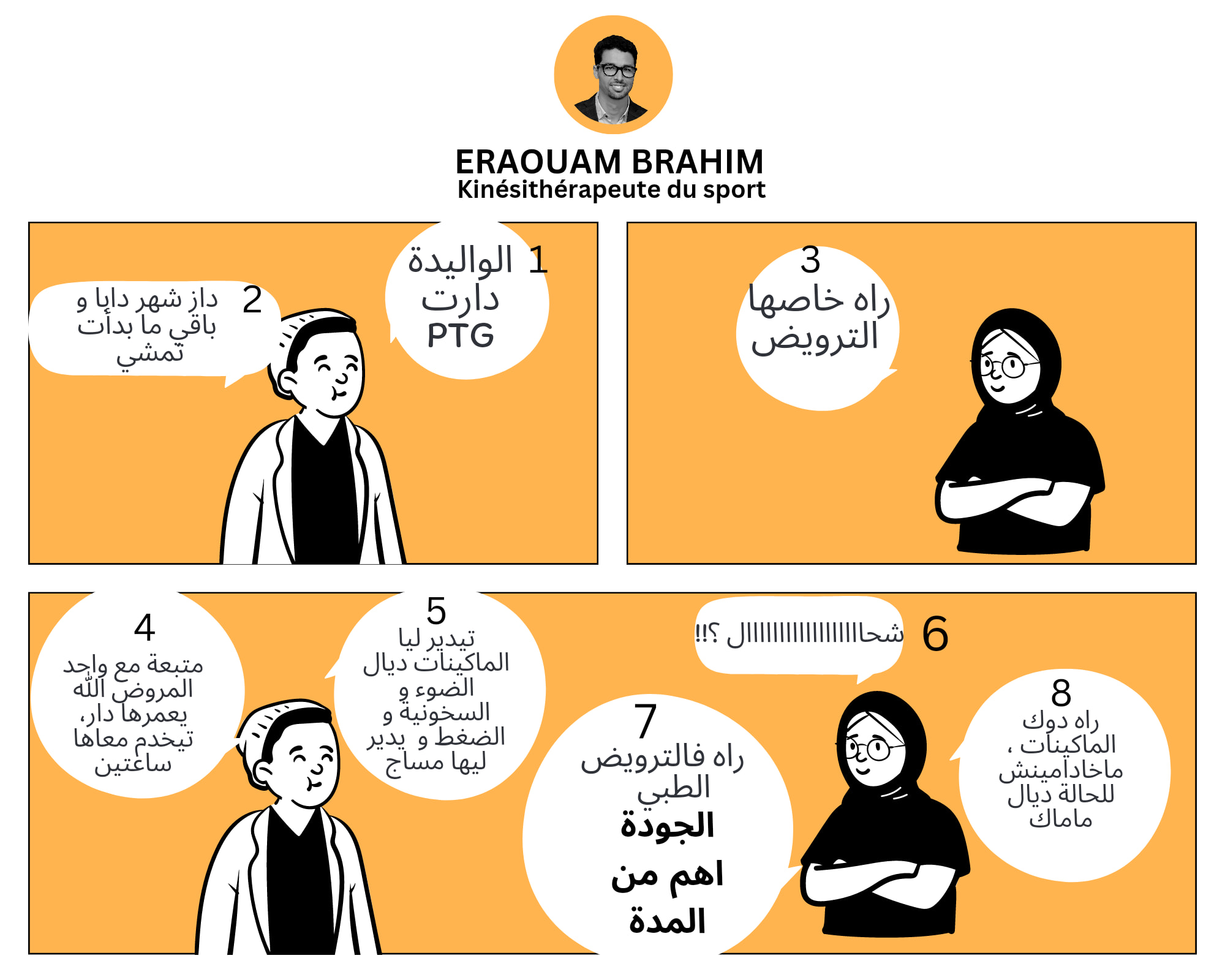 مؤخرًا، واجهت مشكلة مع إحدى مرضاي اللاتي يصرن على جلسات تستغرق ساعة كاملة، وذلك فقط لأن المروض الطبي السابق كان يستغرق دائما ساعة كاملة في كل حصة، لتحقيق هدا المبتغى كان يستخدم العديد من الأجهزة التي لا فائدة لها في العلاج. بالنسبة لي، هذه الأجهزة لا يجب أن تستخدم فقط لتمديد مدة الجلسة، بل ينبغي استخدامها لتلبية احتياجات المريض بشكل محدد.
